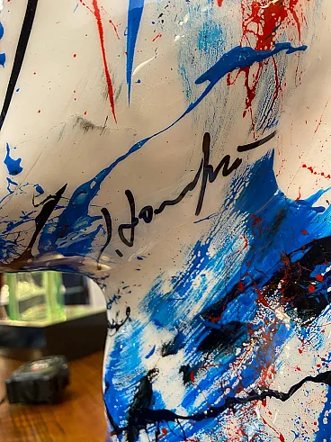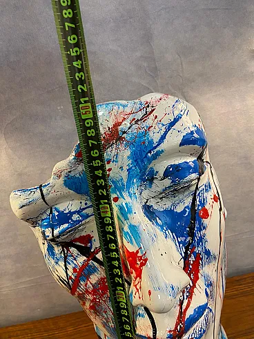 La scultura è un pezzo unico, realizzata con tecnica mista su resina. Le pennellate istintive e l'intensità cromatica conferiscono alla figura una forte presenza scenica, rendendola ideale come elemento decorativo per ambienti moderni, studi professionali, gallerie o collezioni private.