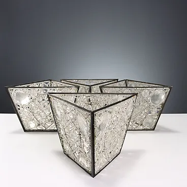 4 Paralumi triedro in vetro di Murano e metallo, '900