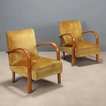 Coppia di poltrone con braccioli in legno curvato a vista, '900