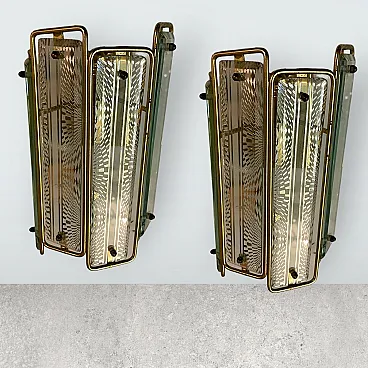 Coppia di applique in ottone e vetro, Italia, anni '70