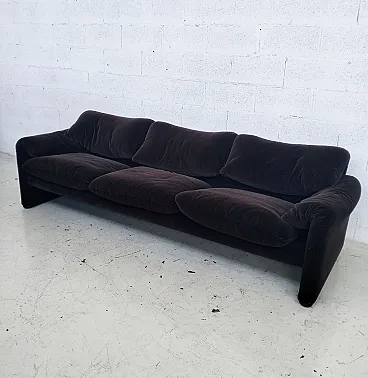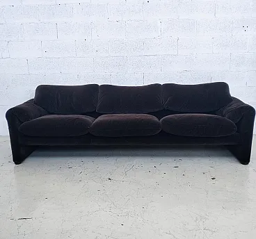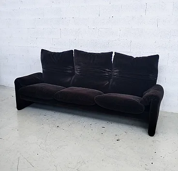Maralunga 3 seater velvet sofa by Vico Magistretti for Cassina 60s