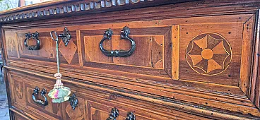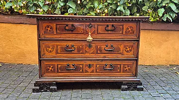 Comò canterano intarsiato in legni diversi, '600