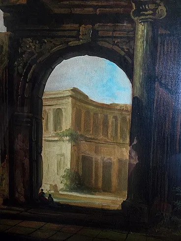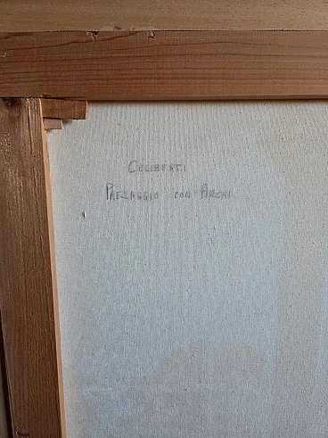 Dipinto olio su tela Paesaggio con archi di Celiberti, anni '70