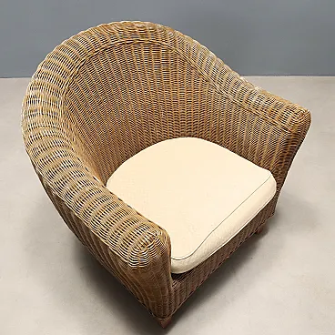 Coppia di poltrone in vimini con cuscini bianchi, '900