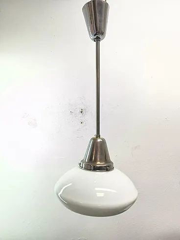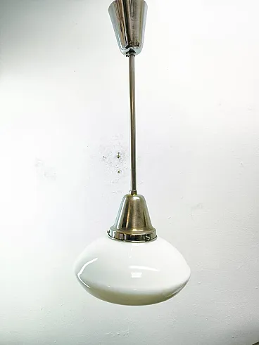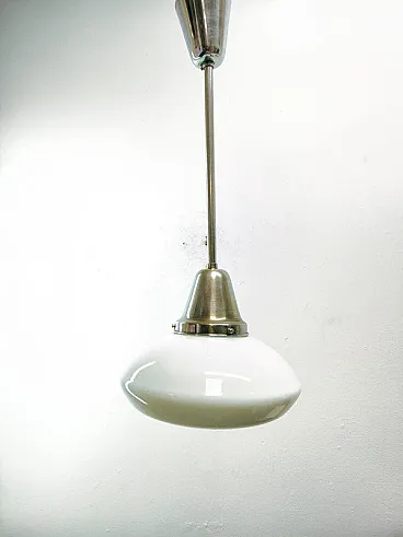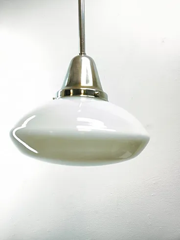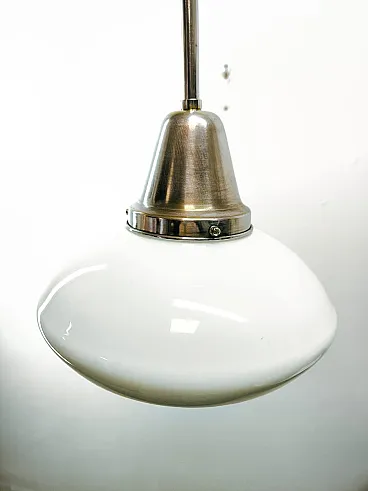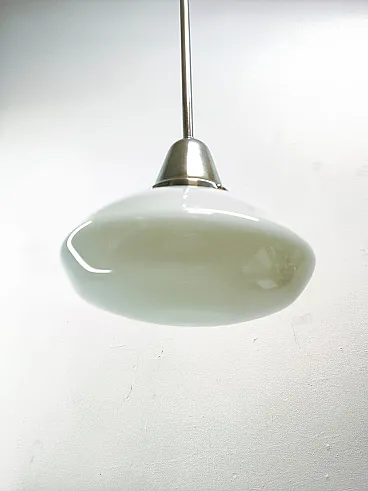 Lampada a sospensione in vetro opalino bianco, anni '50