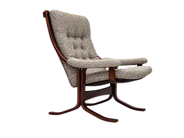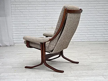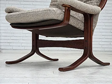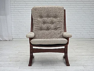 Poltrona norvegese, tessuto misto lana, legno curvato, anni '70
