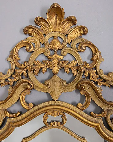 Specchio da parete in stile barocco in legno dorato, fine '800