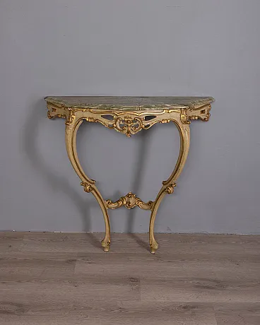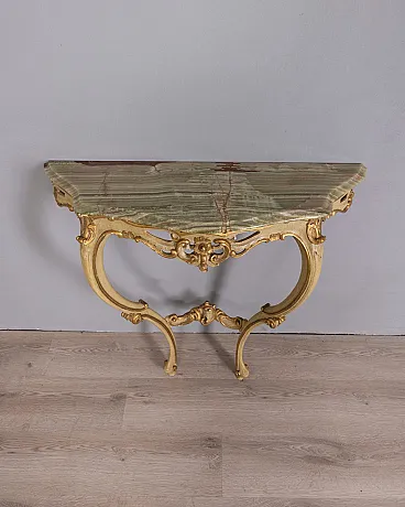 Consolle da parete in stile barocco in legno dorato e onice, fine '800