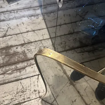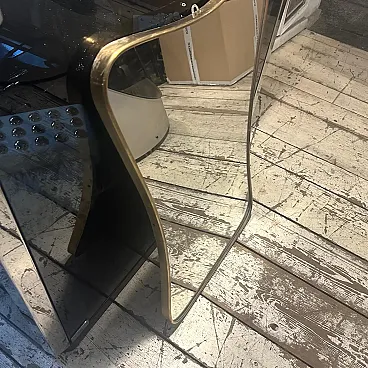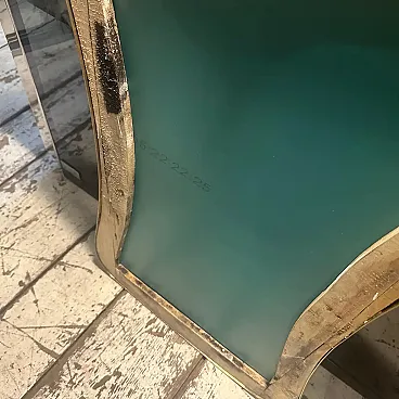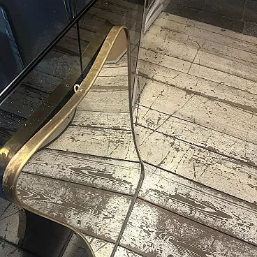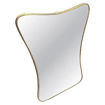 Un incredibile specchio da parete a forma di biscotto della metà del secolo scorso, realizzato a mano in Italia negli anni Cinquanta alla maniera di Gio Ponti, che utilizzava questi specchi da parete per arredare le case più prestigiose di Milano negli anni Cinquanta. La cornice in ottone a specchio è in patina originale, il vetro è in perfette condizioni. Questo specchio da parete in ottone a forma di biscotto è un pezzo straordinario ed elegante che cattura l'essenza del design di metà secolo, riflettendo l'estetica elegante e sofisticata che ha definito l'epoca. Lo specchio è realizzato in ottone, un materiale comunemente utilizzato a metà del secolo scorso per la sua durata e il suo fascino lussuoso. L'ottone emana una luce calda e invitante, aggiungendo un tocco di opulenza a qualsiasi spazio. La cornice dello specchio esibisce linee fluide e forme caratteristiche delle opere di Gio Ponti Il design dello specchio è funzionale e artistico allo stesso tempo. L'ampia superficie riflettente offre un ampio spazio per la visione personale, mentre la cornice funge da elemento decorativo che migliora l'impatto visivo complessivo. La struttura in ottone è lucidata e mette in risalto la bellezza naturale del materiale. La sua superficie liscia ed elegante crea un contrasto accattivante con il vetro specchiato, amplificando le proprietà riflettenti dello specchio. La combinazione di ottone massiccio e vetro riflettente produce un armonioso gioco di luci e ombre, migliorando ulteriormente l'estetica del pezzo. Questo specchio da parete non è solo un oggetto funzionale ma anche un'opera d'arte che incarna l'eleganza e la raffinatezza del design di metà secolo. Emana un fascino senza tempo che si integra perfettamente con vari stili di interni, da quelli contemporanei a quelli di ispirazione retrò. Appeso in salotto, in camera da letto o in corridoio, questo specchio diventa un punto focale che eleva l'ambiente e aggiunge un tocco di fascino vintage.