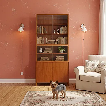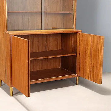 Mobile contenitore con impiallacciatura in larice e particolari in ottone, con vetrina e ante a battente. In buone condizioni generali, presenta qualche segno d'uso come visibile in foto.