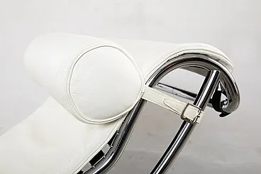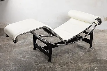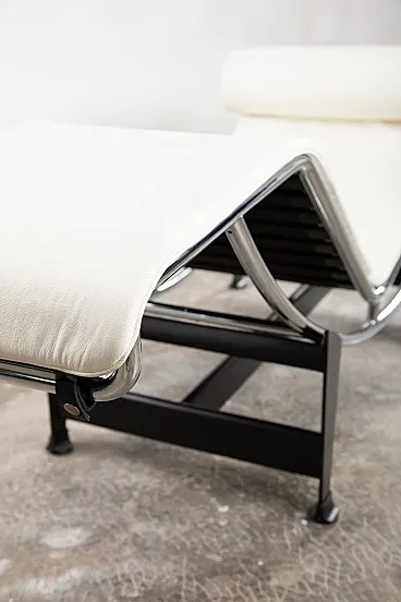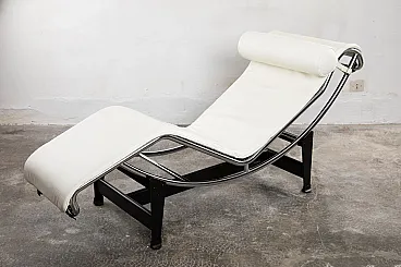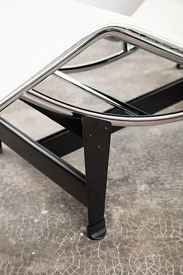 • Designer: Le Corbusier, Pierre Jeanneret e Charlotte Perriand • Produttore: Cassina – I Maestri • Modello: Chaise Longue LC4 • Versione rivestita in pelle bianca • Struttura in acciaio cromato e base in acciaio verniciato nero. Inclinazione regolabile per il massimo comfort. come nuovo. Imbottitura e finiture in condizioni impeccabili.