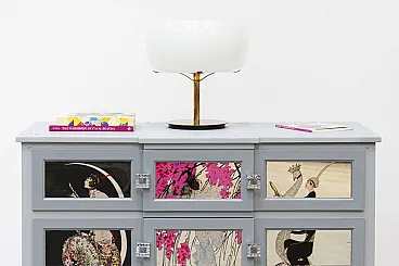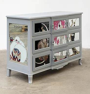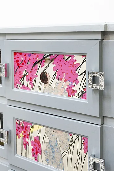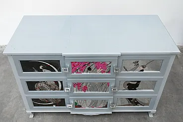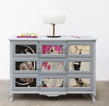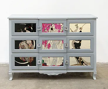 Cassettiera artigianale in legno di pero e teak, anni '20