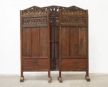 Paravento separè etnico in legno di teak, '900
