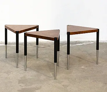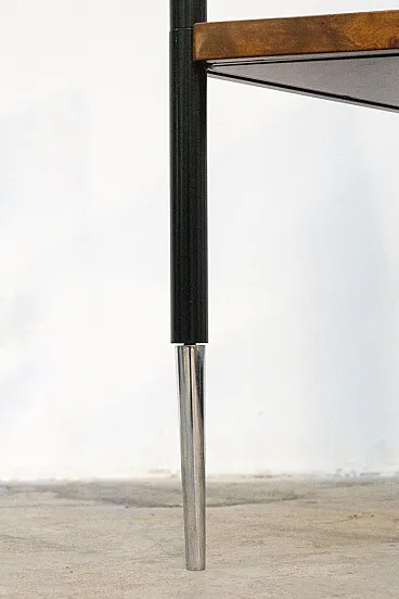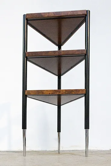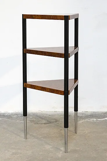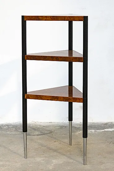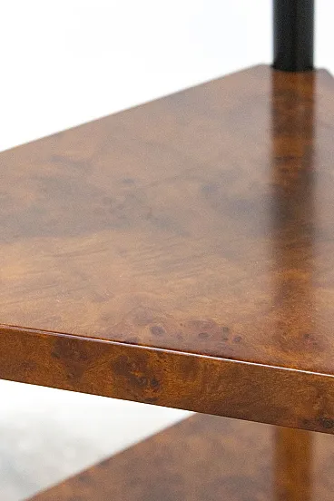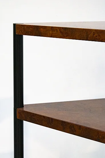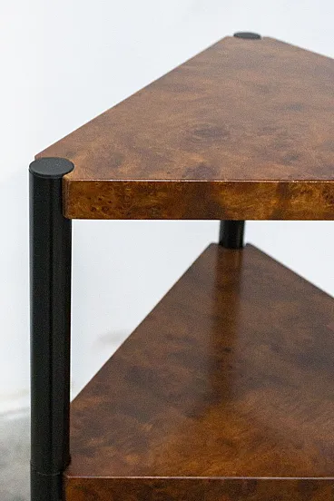 Mensola angolare in radica di olmo e acciaio, anni '70