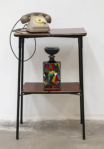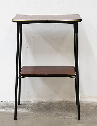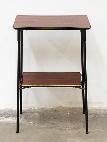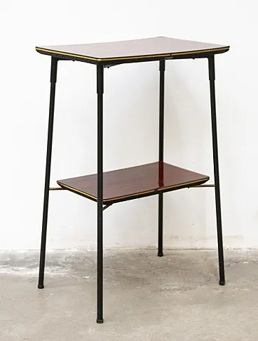 Tavolino a due ripiani in mogano e ottone, fine '900