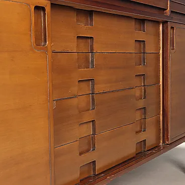 Credenza con ante scorrevoli e cassetti impiallacciata in noce, '900