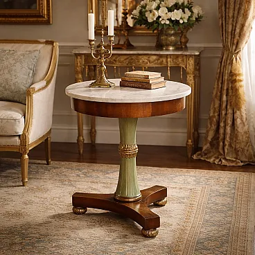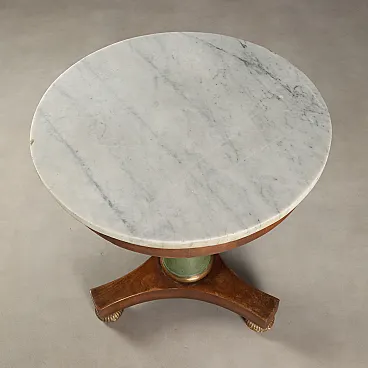 Tavolino impero in mogano con piano in marmo bianco, primo '800
