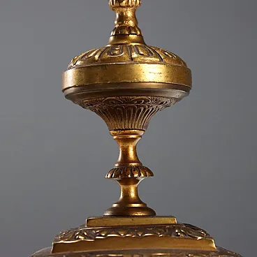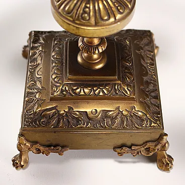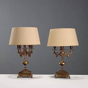Coppia di lampade da tavolo in bronzo battuto e dorato, '900