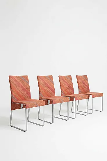 Elegante set di 4 sedie modello “Ealing”, disegnate da Giovanni Offredi per Saporiti Italia, una delle manifatture italiane più rappresentative del design d’autore tra anni ’70 e ’80.