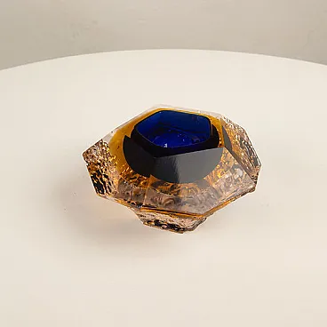 Straordinario posacenere scultoreo realizzato da Gianfranco Mandruzzato a Murano tra gli anni Sessanta e Settanta, esemplare emblematico della sua ricerca sul vetro sommerso e sulla geometria sfaccettata.