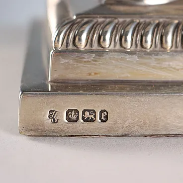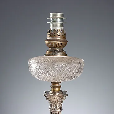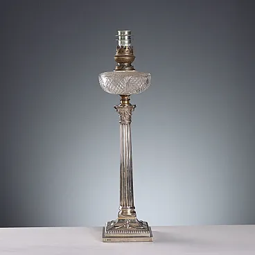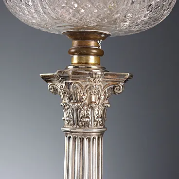 Lampada in argento sbalzato e cesellato e vetro, '800