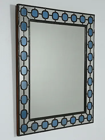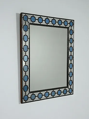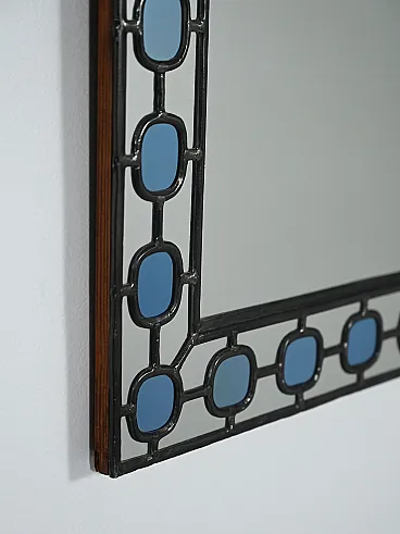 Specchio anni ’40/’50 con cornice in legno rivestita da vetro piombato, inserti ovali azzurro carta da zucchero. Produzione Älvsjö Glasmästeri & Ramaffär.