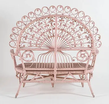 Divanetto in canna d'India e bambù di Valentino Più, anni '70