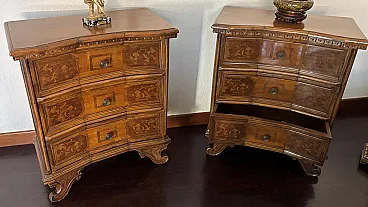 Coppia cassettiere in noce con intarsi, '800