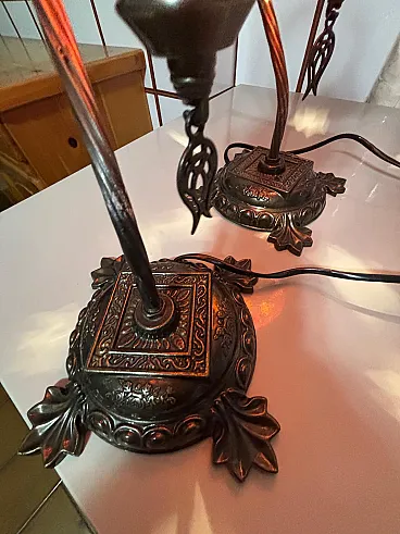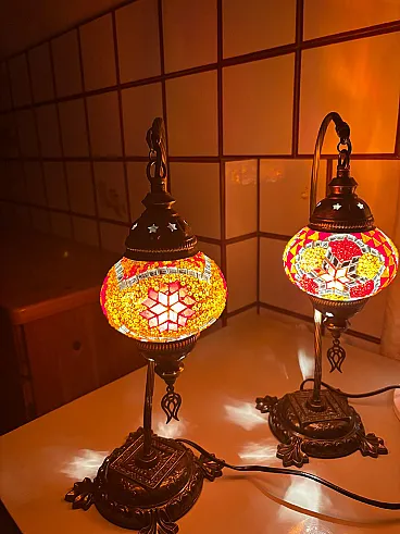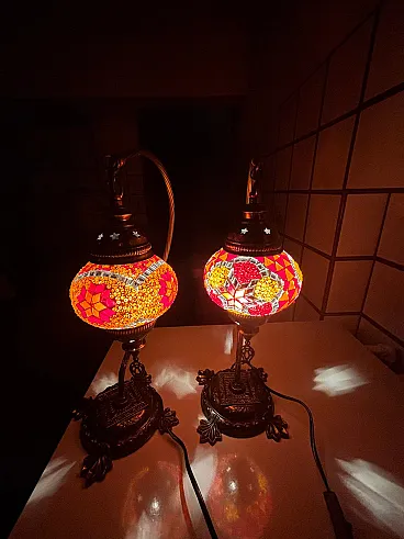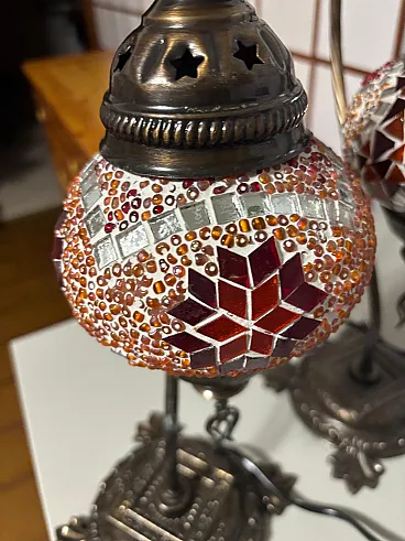 Coppia di lampade a mosaico turco e supporto in bronzo, anni ''90