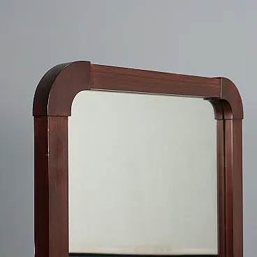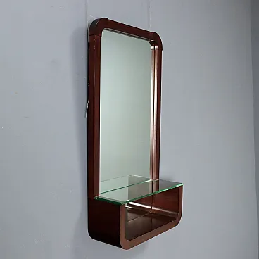 Consolle con piano in vetro e impiallacciatura di legno esotico, '900