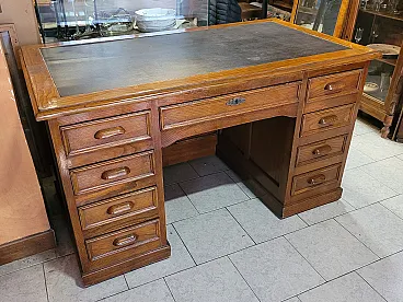 Scrivania in legno di rovere con piano in pelle nera, Italia