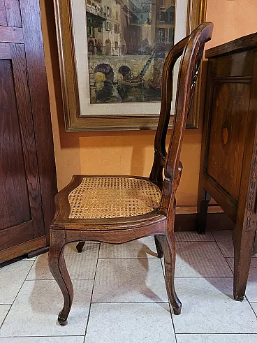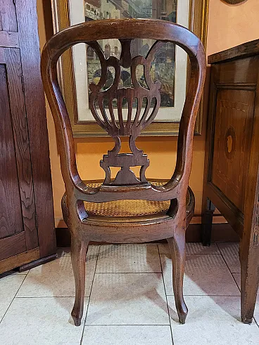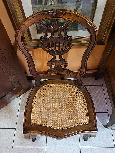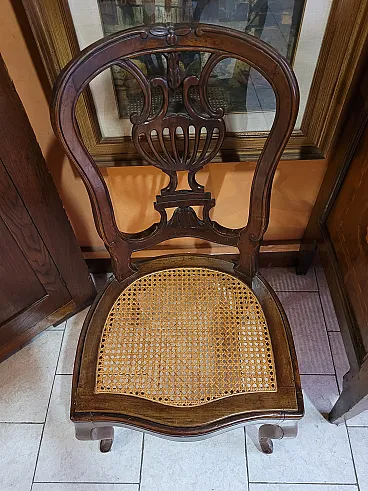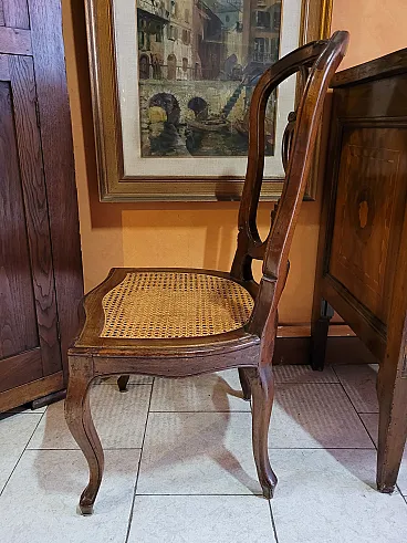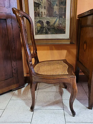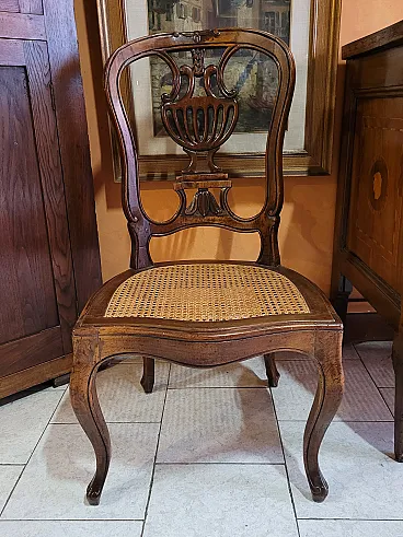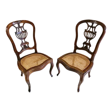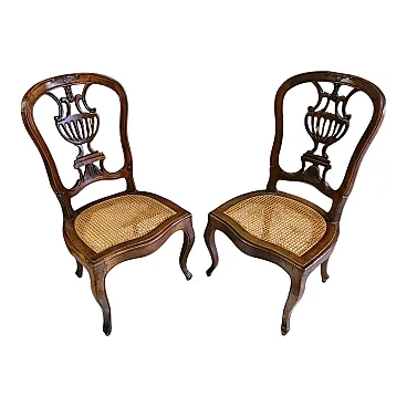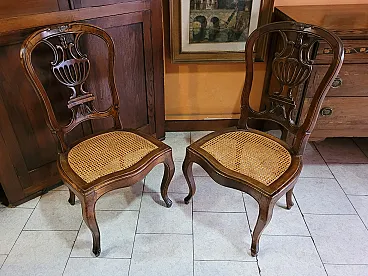Coppia di sedie a mongolfiera in legno di noce con seduta in paglia