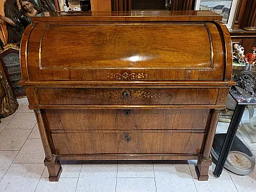 Ribalta a rullo Impero in legno di noce, Lombardia, '800