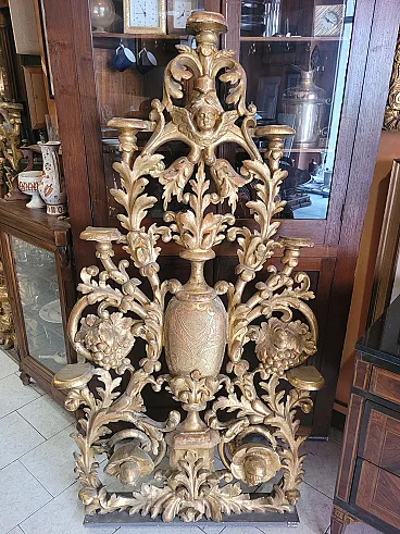 Coppia di candelabri da terra in legno dorato, '700