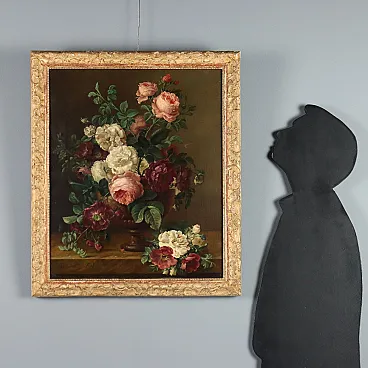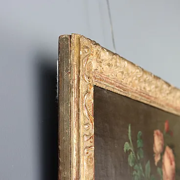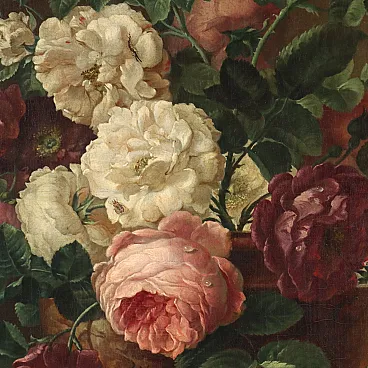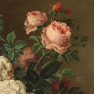 Olio su tela. Firmato e datato in basso a sinistra, con la dicitura \"Bruyère née L.B. 1824\". La pittrice francese, figlia d\'arte, era specializzata in composizioni floreali e nature morte, realizzate con grande realismo e ricche di dettagli. Una sua opera è esposta al Museo del Louvre. Il dipinto qui proposto è presentato in cornice del XIX secolo.