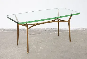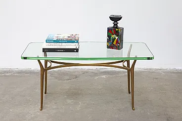 Tavolino in ottone e vetro temprato, '900