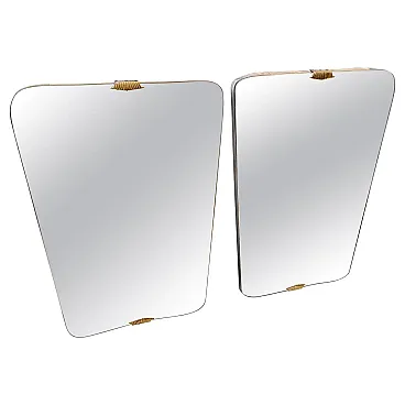 Coppia di specchi da parete in legno e ottone di Gio Ponti, anni '50