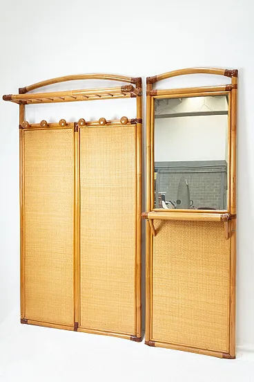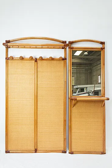 Attaccapanni e specchio in bambù, anni '60