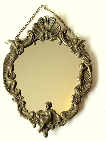 Piccolo specchio da parete in ottone e legno, anni '50