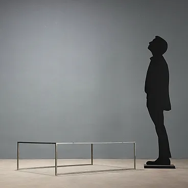 Tavolino in acciaio e piano in vetro trasparente, '900