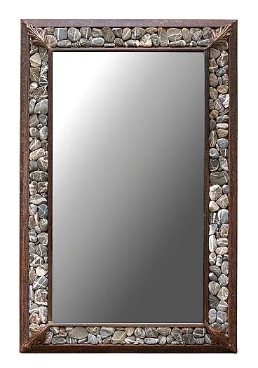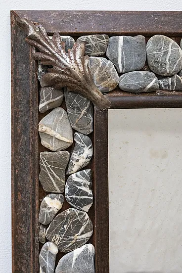 Specchio artigianale in ferro e pietre, XX secolo