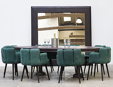Specchio di lusso con cornice in legno e cuoio, '900