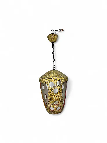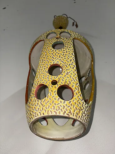 Lampadario lanterna in ceramica smaltata di Antonia Campi, anni '50