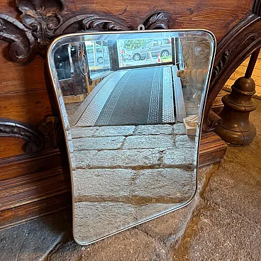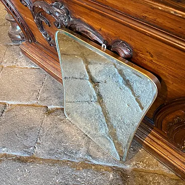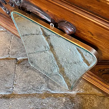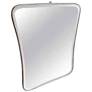 Uno straordinario specchio da parete moderno a forma di biscotto della metà del secolo realizzato a mano in Italia negli anni Cinquanta alla maniera di Gio Ponti che usò questi specchi da parete per arredare le case più prestigiose di Milano negli anni Cinquanta. La cornice dello specchio in ottone è in patina originale, il vetro è in perfette condizioni. Questo specchio da parete in ottone a forma di biscotto è un pezzo straordinario ed elegante che cattura l'essenza del design della metà del secolo, riflette l'estetica elegante e sofisticata che ha definito l'epoca. Lo specchio è realizzato in ottone, un materiale comunemente utilizzato durante la metà del secolo per la sua resistenza e il suo fascino lussuoso. L'ottone conferisce una luce calda e invitante, aggiungendo un tocco di opulenza a qualsiasi spazio. La cornice dello specchio mostra linee e forme fluide caratteristiche delle opere di Gio Ponti. Il design dello specchio è sia funzionale che artistico. L'ampia superficie riflettente offre ampio spazio per la visione di sé, mentre la cornice funge da elemento decorativo che migliora l'impatto visivo complessivo. La struttura in ottone è lucidata mettendo in mostra la bellezza naturale del materiale. La sua superficie liscia ed elegante crea un accattivante contrasto con il vetro a specchio, amplificando le proprietà riflettenti dello specchio. La combinazione di ottone massiccio e vetro riflettente produce un gioco armonioso di luci e ombre, migliorando ulteriormente il fascino estetico del pezzo. Questo specchio da parete non è solo un oggetto funzionale ma anche un'opera d'arte che incarna l'eleganza e la raffinatezza del design della metà del secolo. Emana un fascino senza tempo che si integra perfettamente con vari stili di interni, dagli spazi contemporanei a quelli di ispirazione retrò. Che sia appeso in soggiorno, in camera da letto o in corridoio, questo specchio diventa un punto focale che eleva l'atmosfera e aggiunge un tocco di fascino vintage.