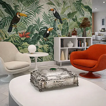 Scatola in argento inciso, cesellato e lavorato a bulino, '900