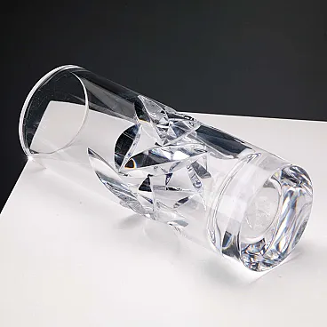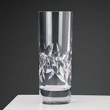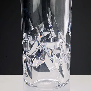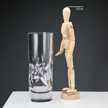 Vaso cilindrico in cristallo con decoro a foglie, '900