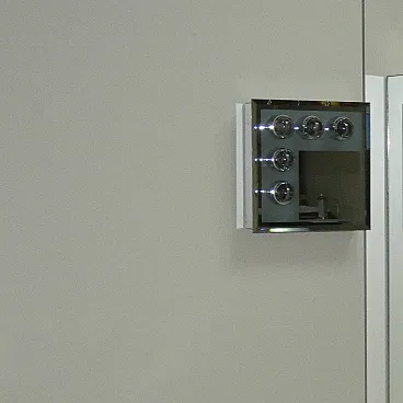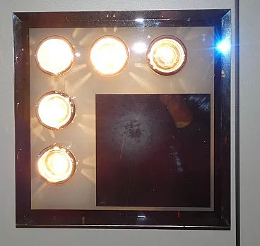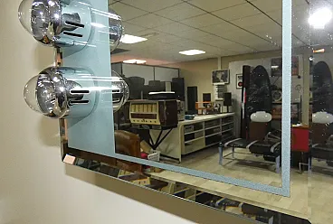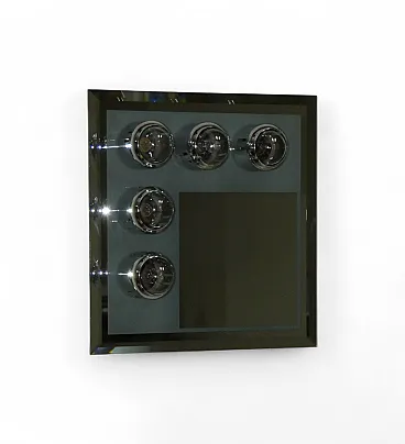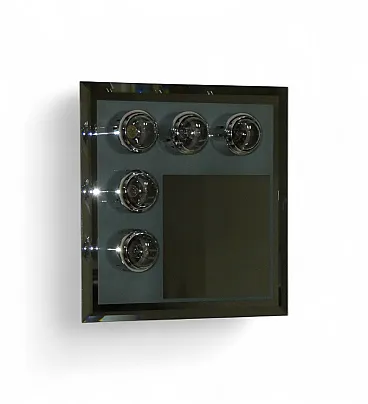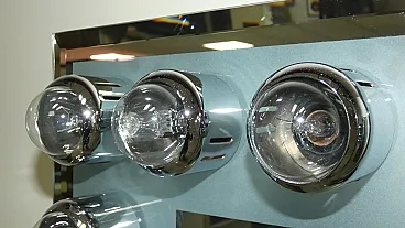 Lampada da parete in acciaio cromato con specchio e luci, anni '70