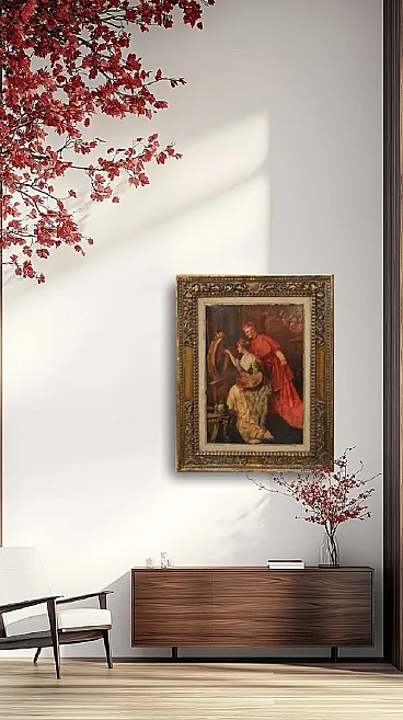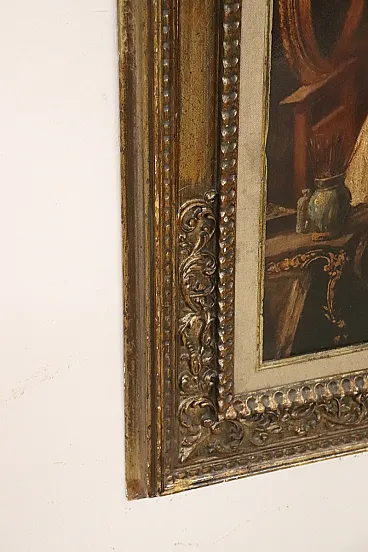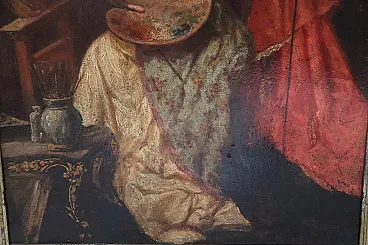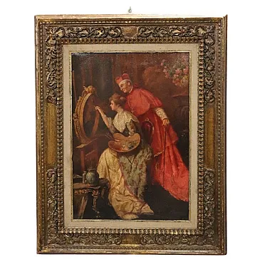 Olio su cartone, Giovane pittrice con cardinale, '800