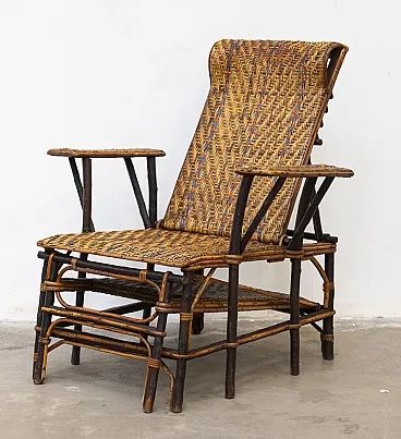 Sedia a sdraio in rattan, anni '30