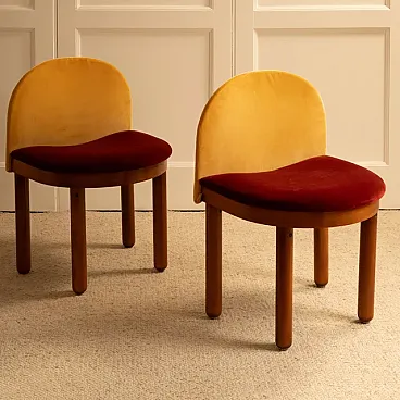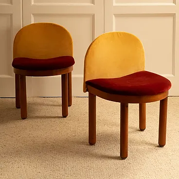 Coppia di sedie in legno e velluto, anni '80